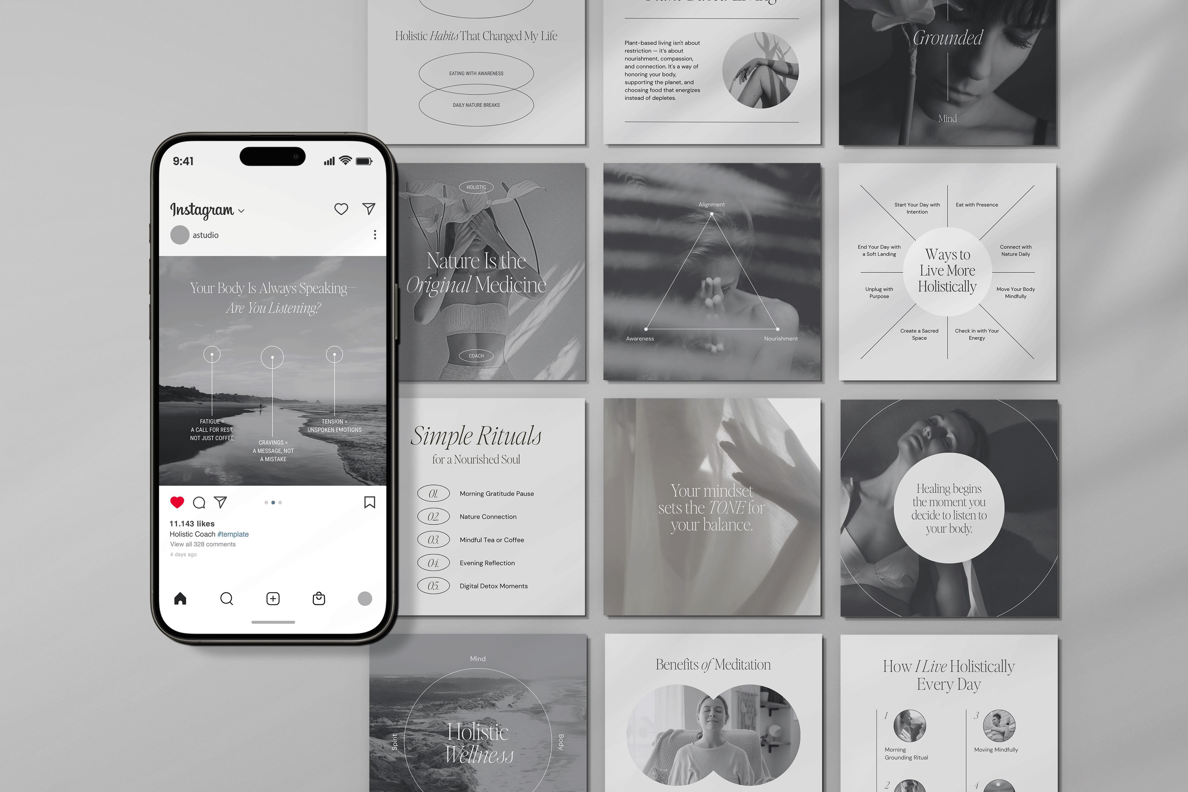 Created a collection of Canva templates for Instagram posts tailored to coaches, designed to share tips, insights, and motivational content. The templates combine visually engaging layouts with clear messaging to help coaches maintain a consistent and professional social media presence.