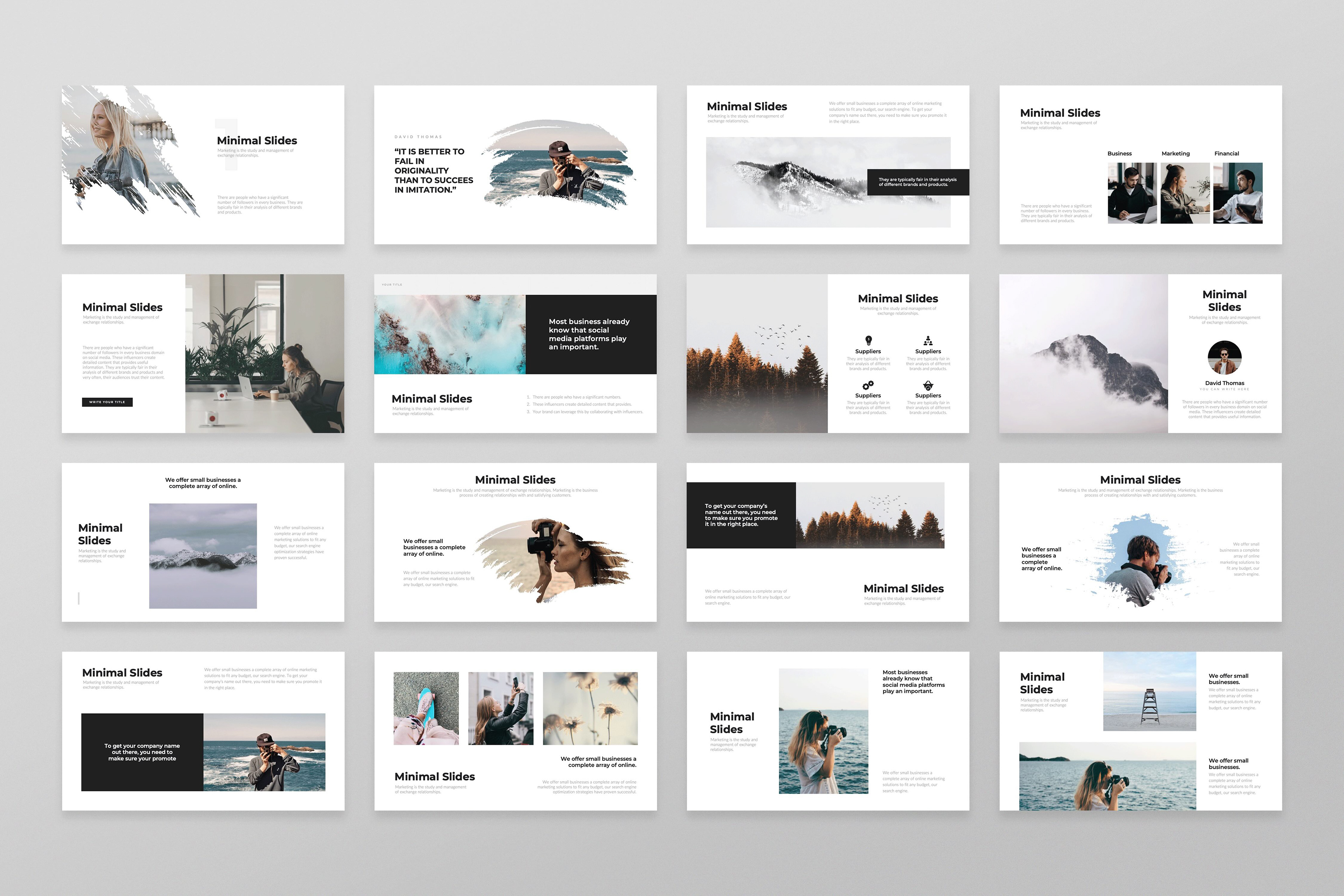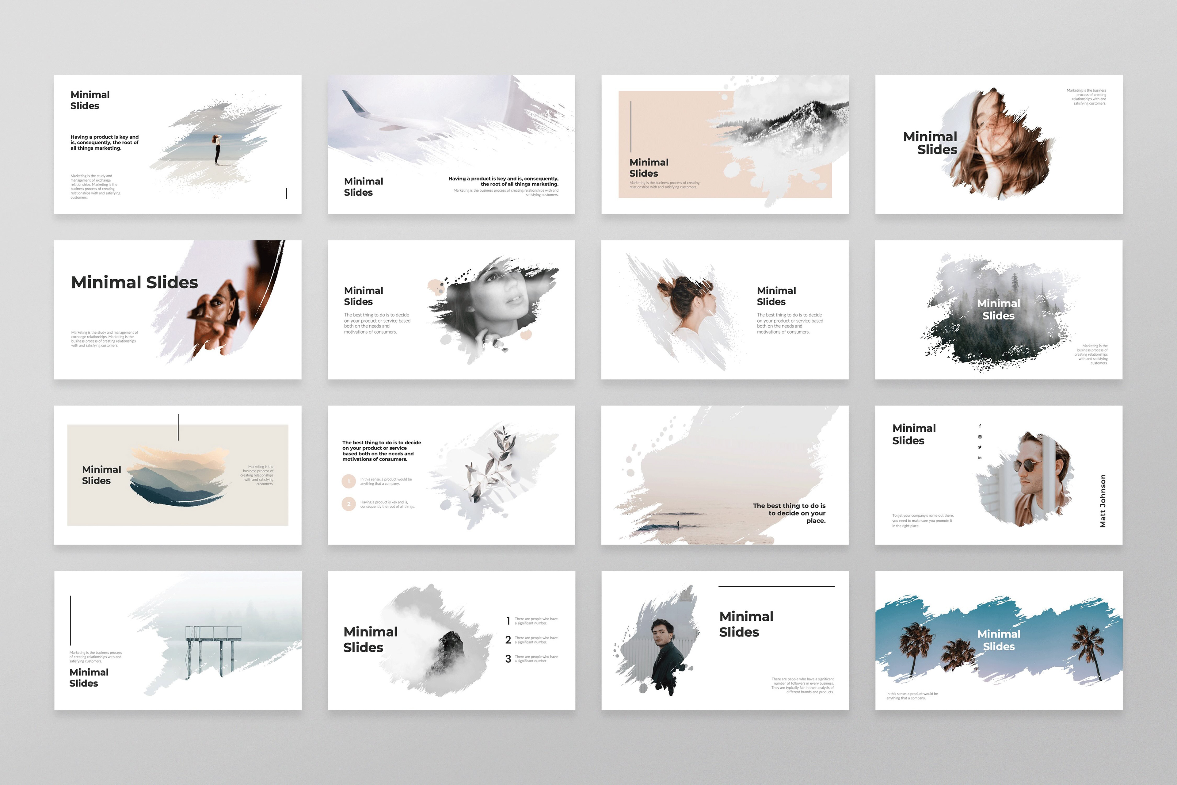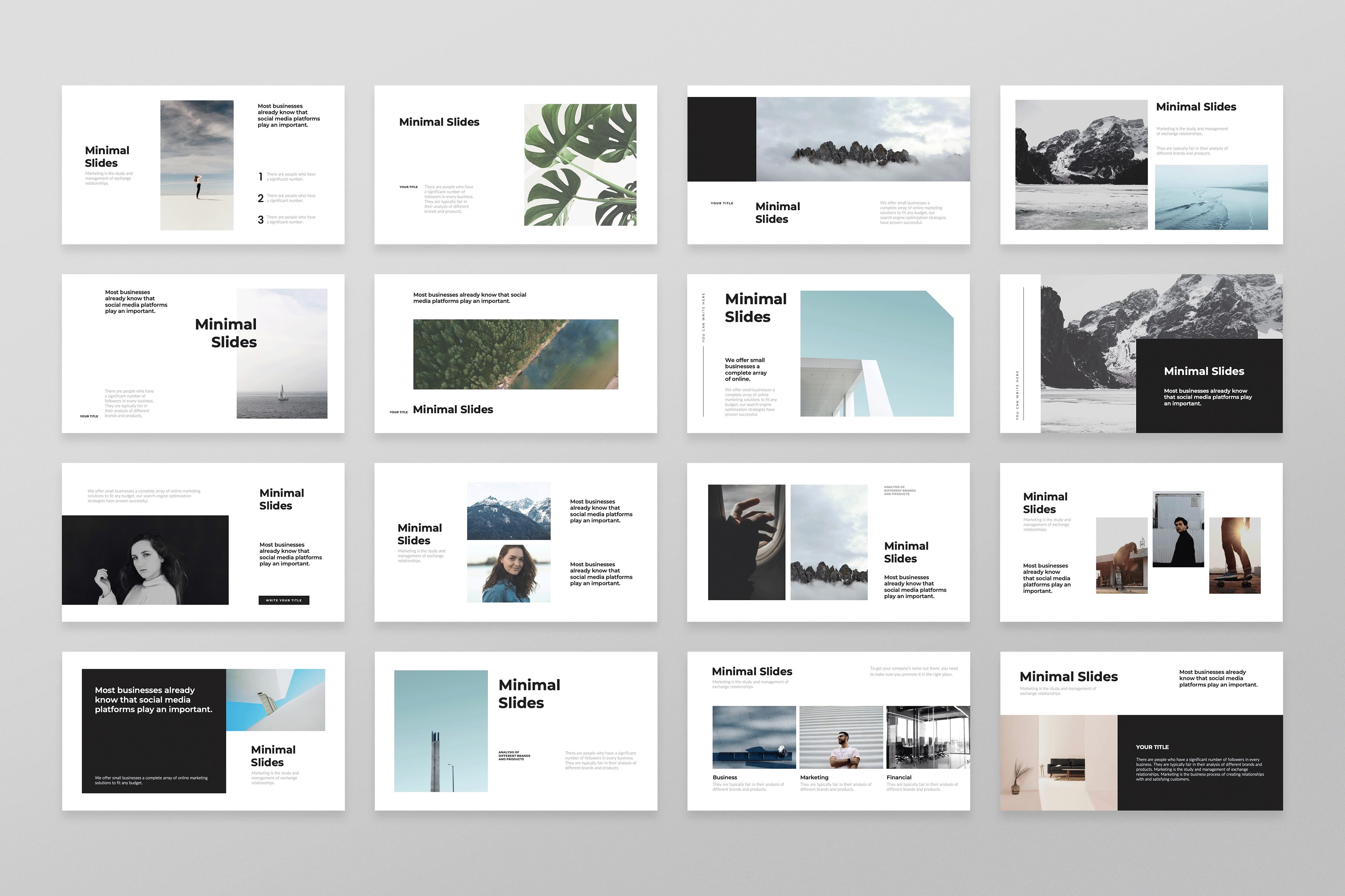 Designed clean and professional minimal-style PowerPoint slides, focusing on simplicity, clarity, and modern aesthetics. The layouts highlight key information with impactful visuals and plenty of white space, making them ideal for business, creative, or educational presentations.